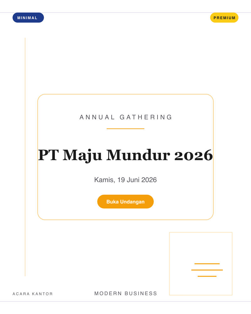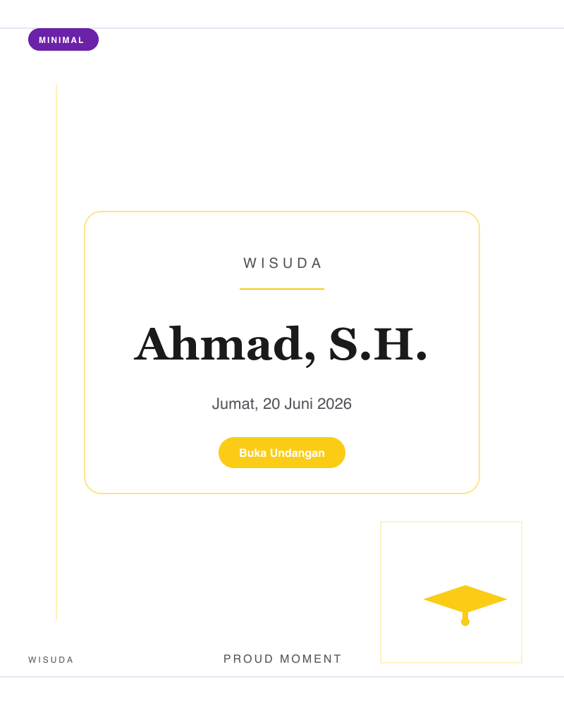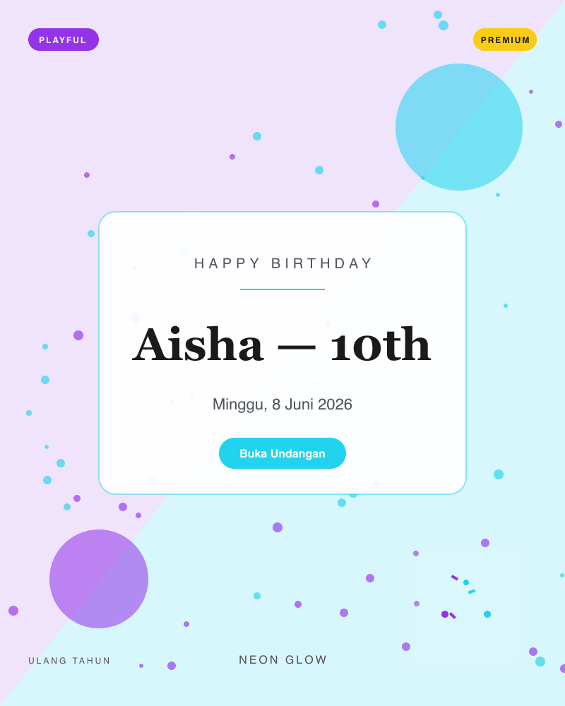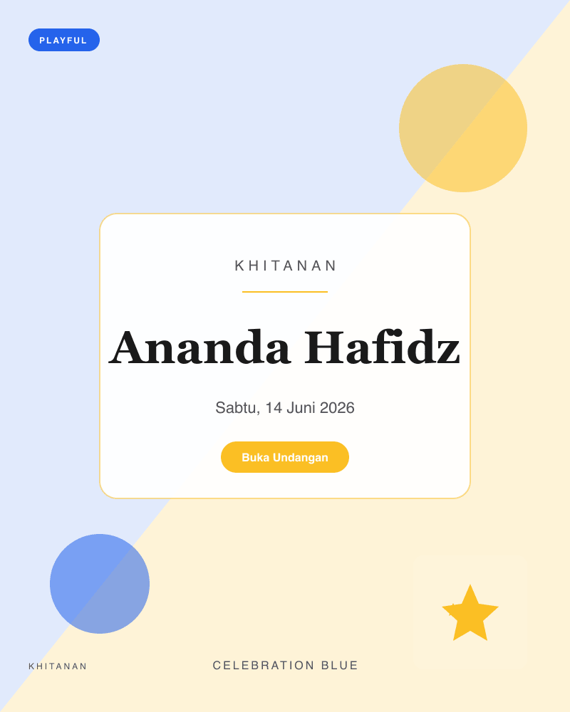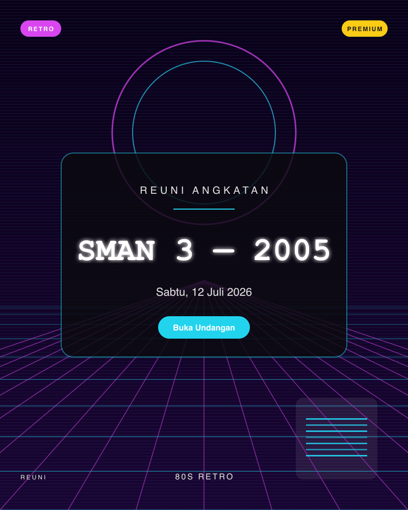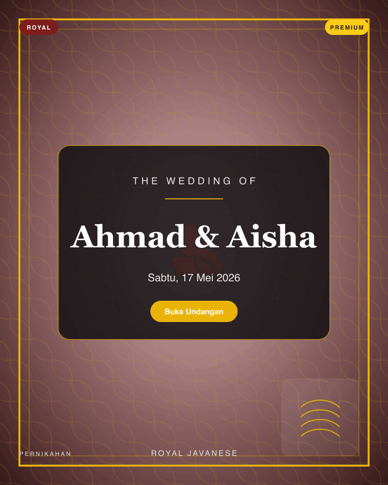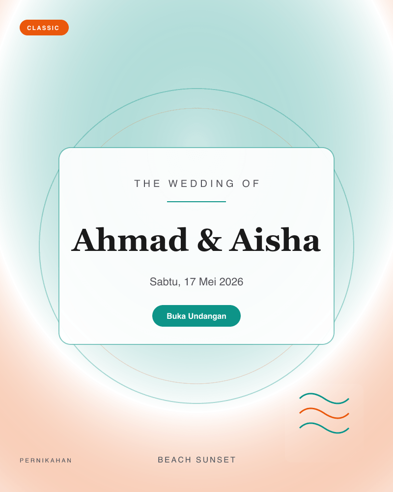18 template siap pakai — dari klasik, playful, Islamic, minimal, royal, hingga retro. Preview langsung sebelum memilih.